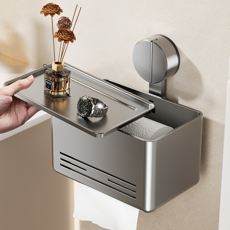 吸盤トイレティッシュボックス壁掛け式穴なしバスルームリビングルーム引き出しトレイトイレットペーパーボックススペースアルミ収納ラック