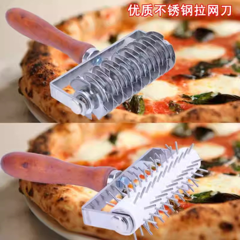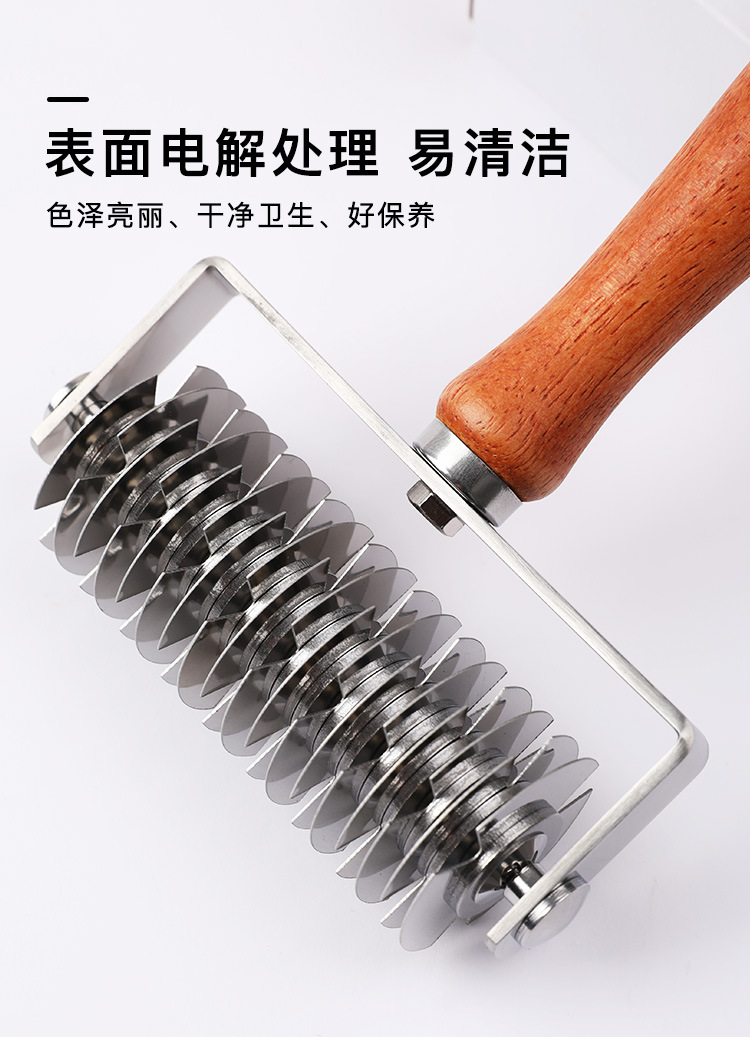 ステンレス鋼ローラーナイフ木製ハンドル麺棒ピザメッシュナイフベーキングペストリーメッシュローラーナイフ小麦粉スティック