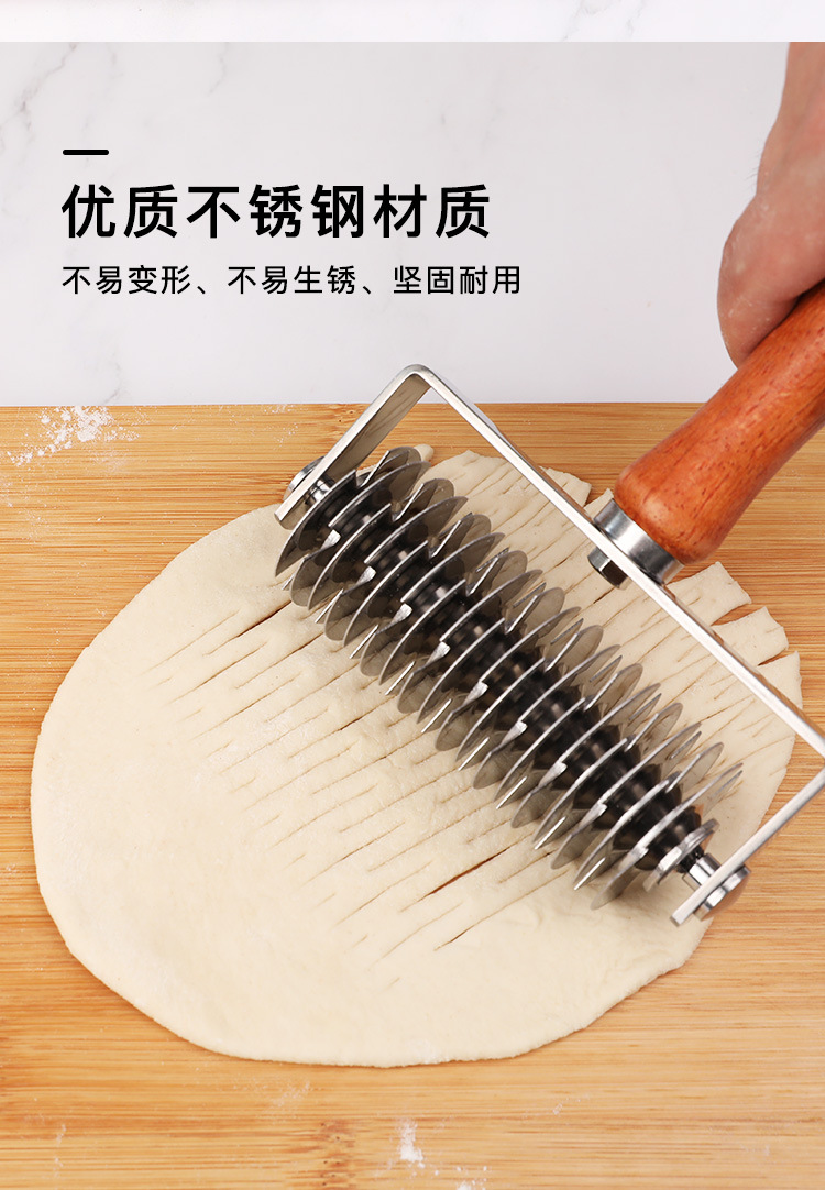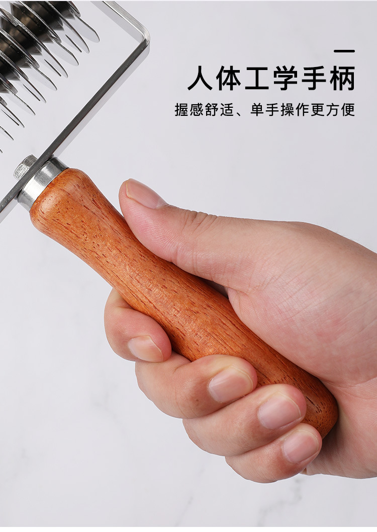 不锈钢木柄滚轮刀烘培滚针刀轮刀披萨饼干打孔刀烘培厨房烘焙工具