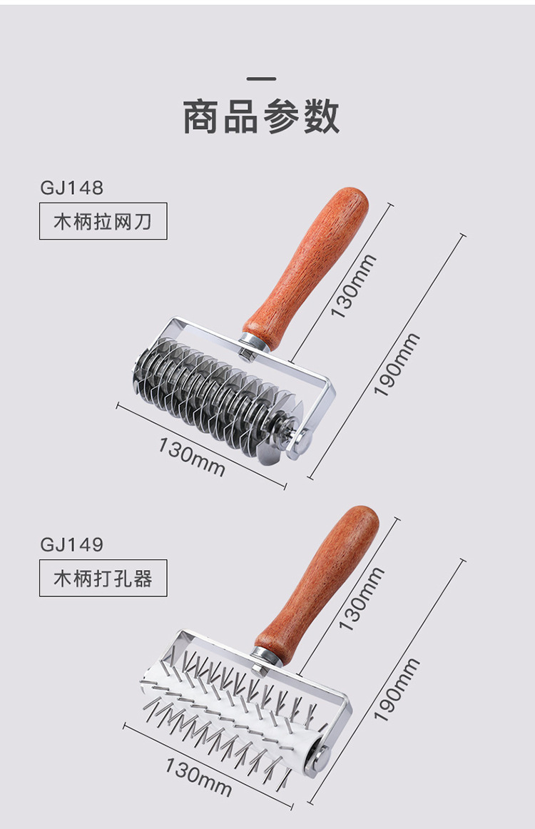 不锈钢木柄滚轮刀烘培滚针刀切轮刀披萨饼干打孔刀烘焙刀具