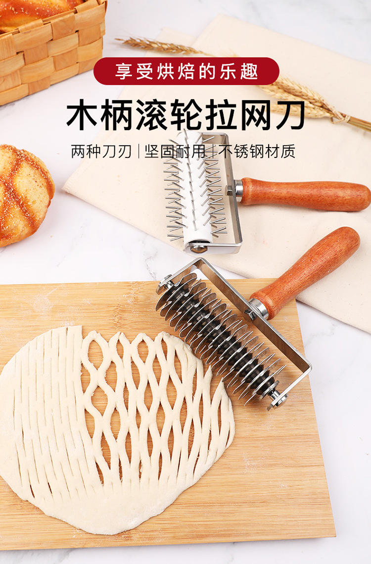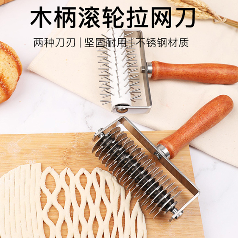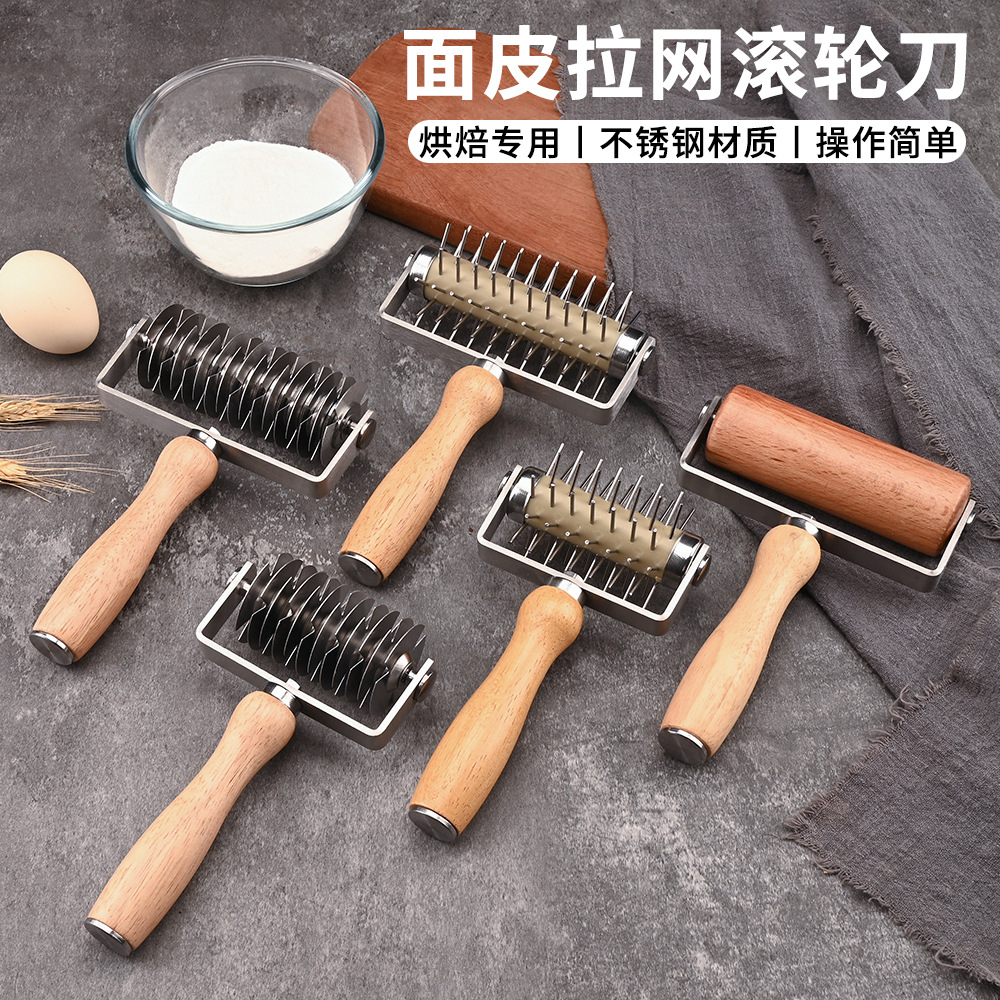 ローラーナイフ引き网ナイフ引き花ナイフ木柄ローラーナイフローラーニードルお菓子ロールピザホイールナイフベーカリーツール
