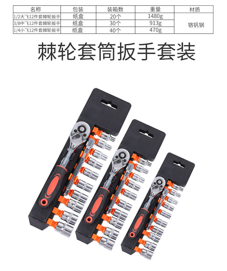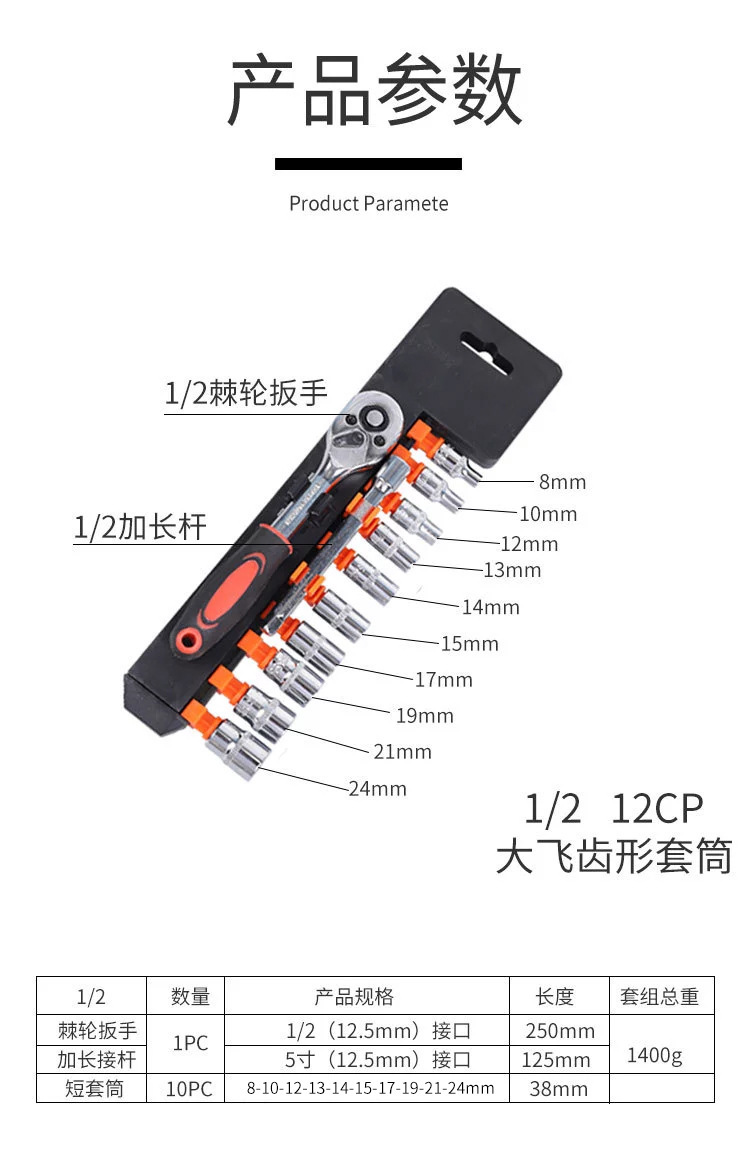 クロスボーダー1/4小飛12個セット自動車修理ツール1/2大飛12個セットラチェット高速ソケットレンチセット