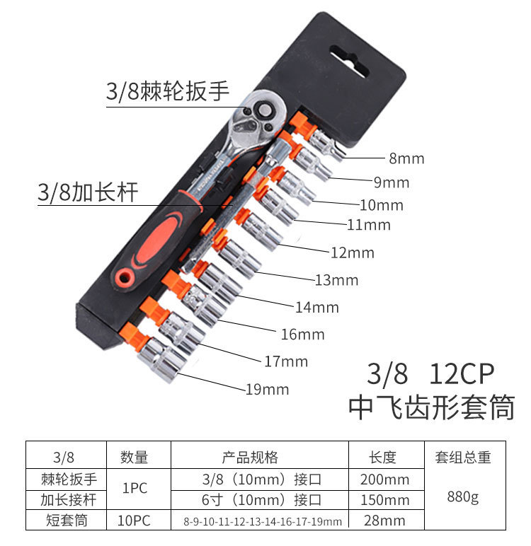 自動車修理ツール12個スリーブセットラチェットクイックソケットレンチセット自動車金物工具箱多機能
