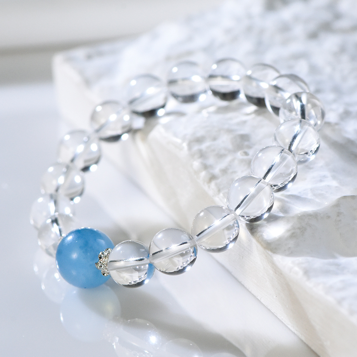 天然の白い水晶の10mmの玉の単輪のブレスレットのファッションは簡単です。
