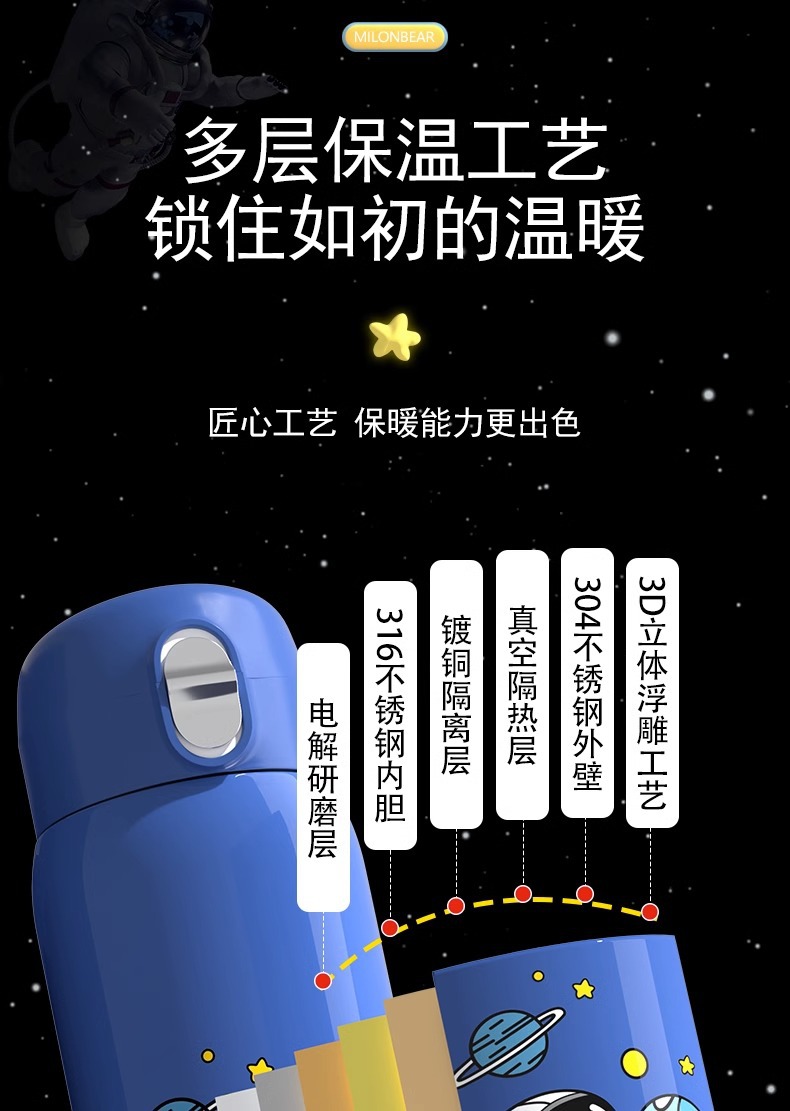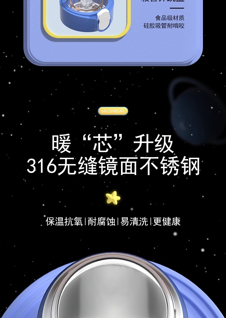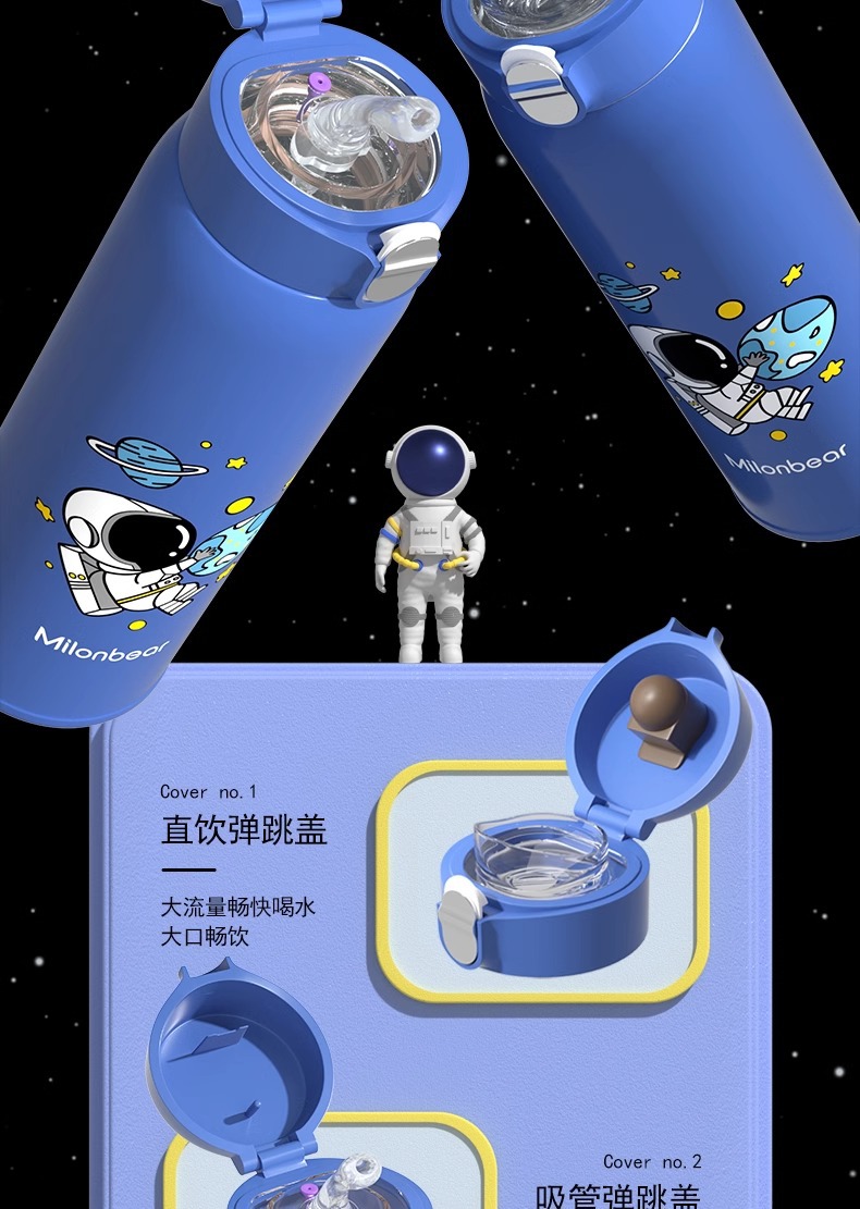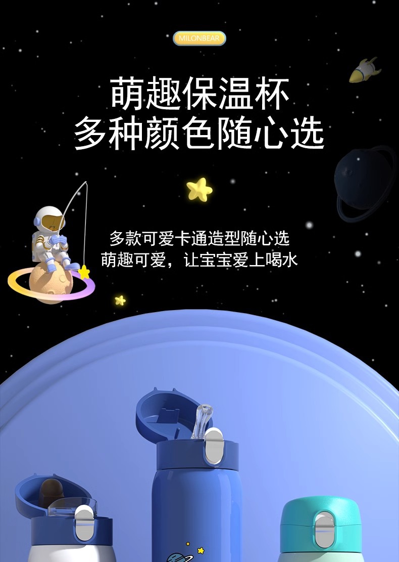 ミロン熊児童保温カップ316食品級ストロー直飲両用小学生通学専用児童水筒
