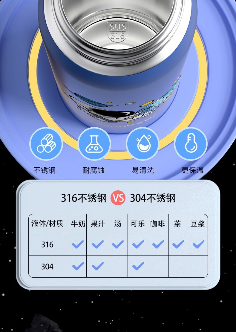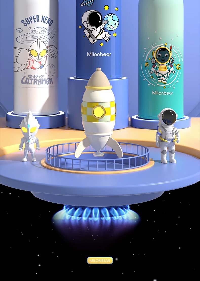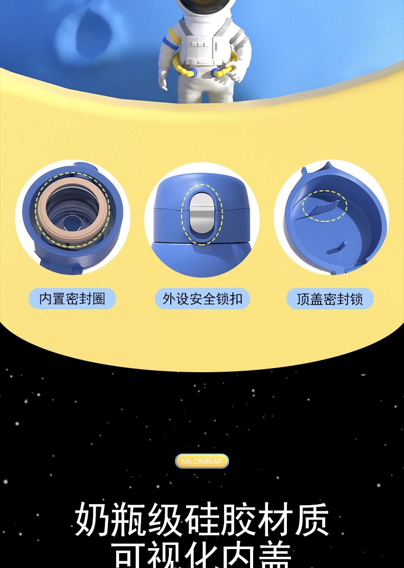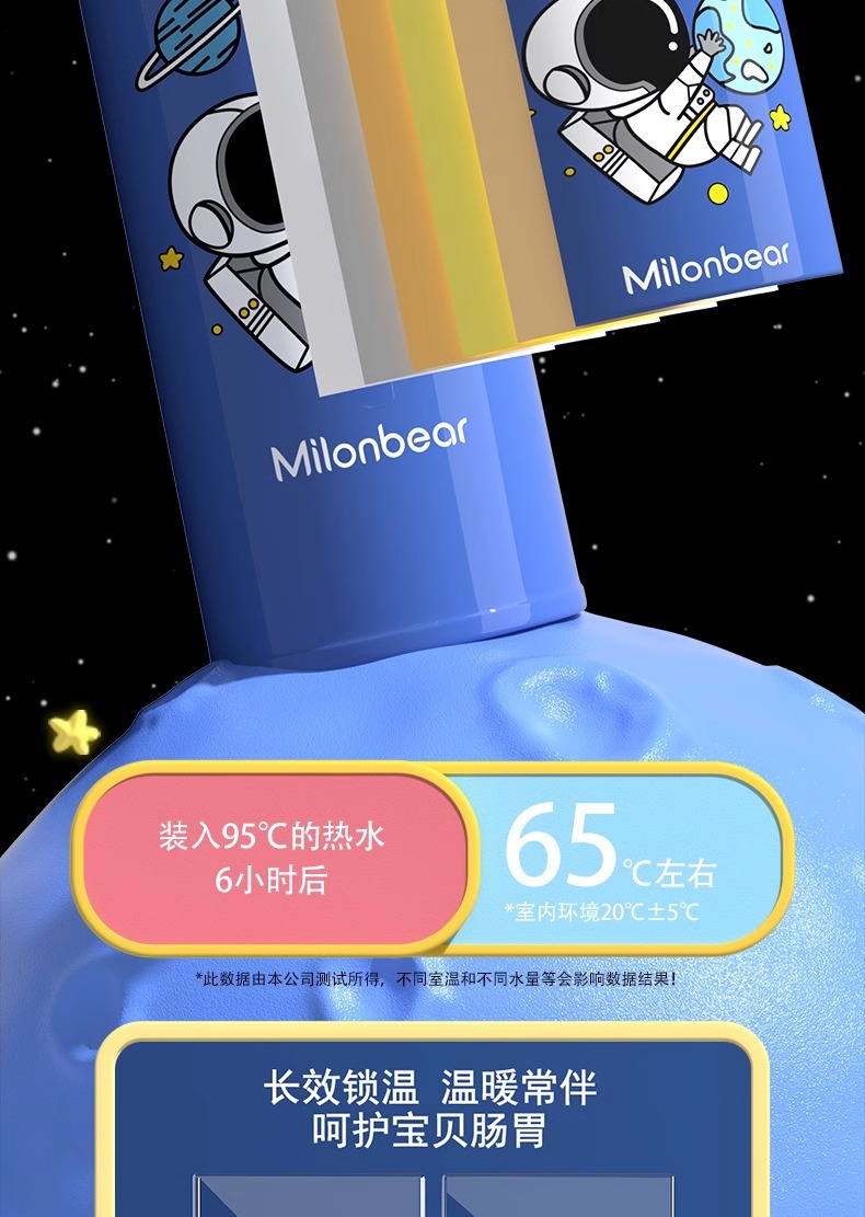 ミロン熊児童保温カップ316食品級ストロー直飲両用小学生通学専用児童水筒