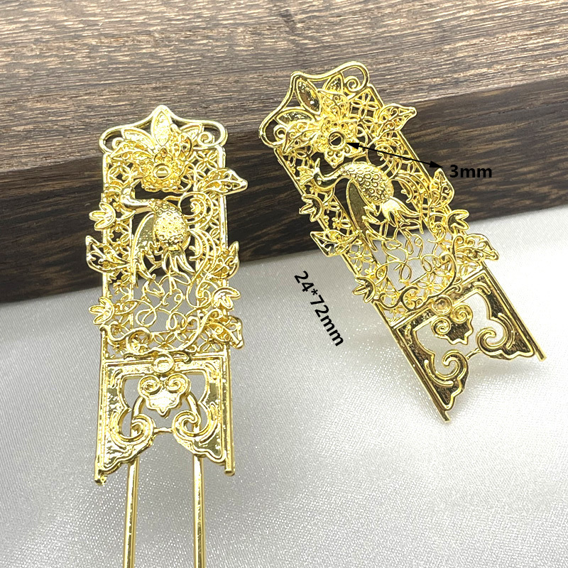 古风合金双面镂空花丝发簪DIY汉服头饰配件保色手工材料步摇发饰