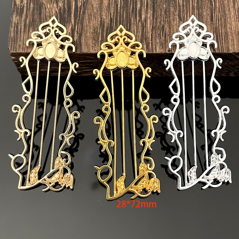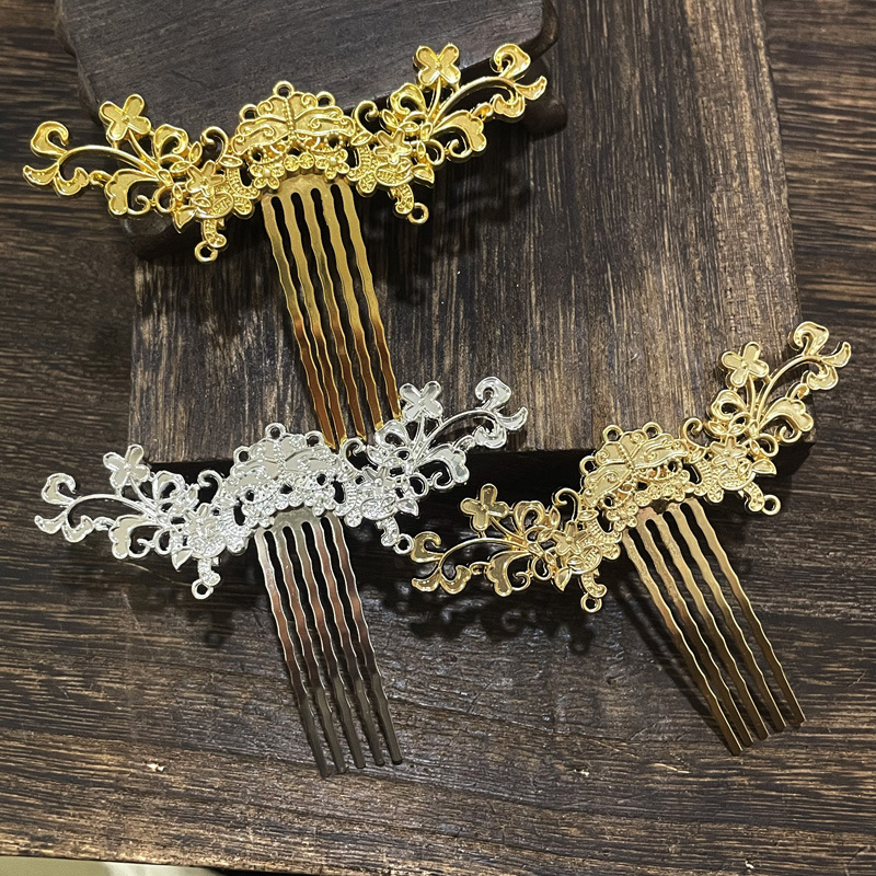 古风合金插梳发饰DIY材料镂空花片汉服头饰配件发梳