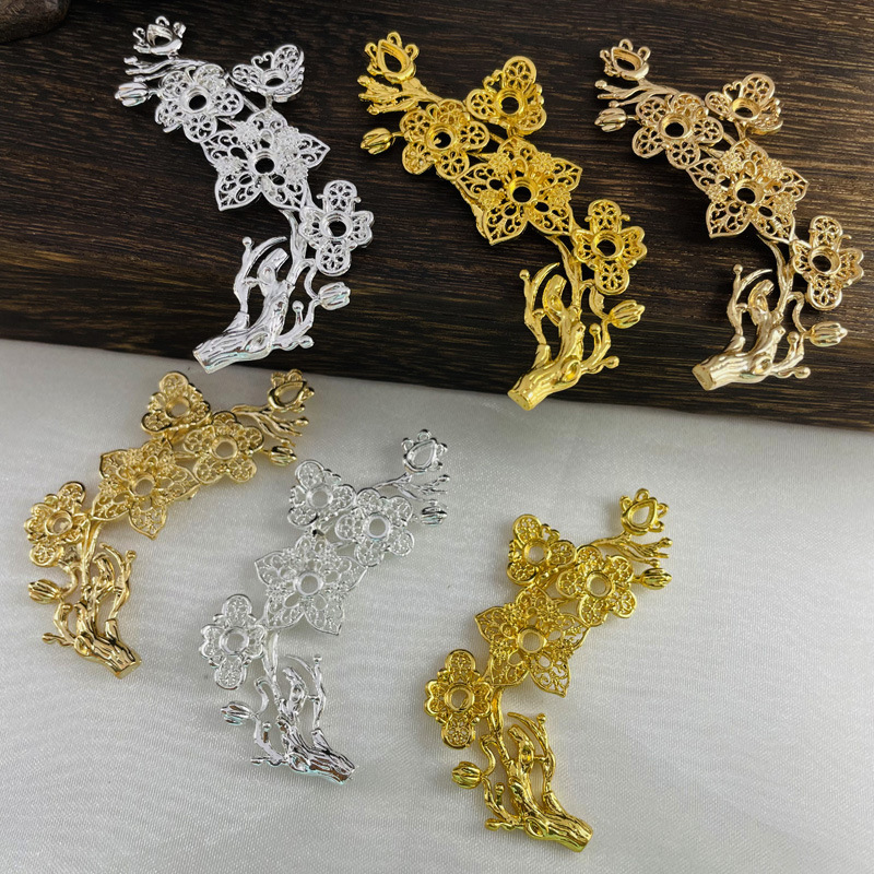古風diyヘアピン頭飾り材料合金立体枝樹枝ストラップ部品梅の枝