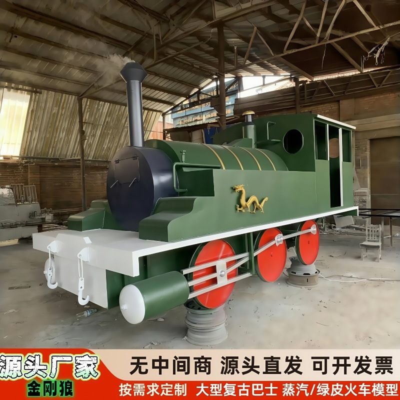 厂家制作大型仿真复古火车模型蒸汽火车头绿皮火车内燃机火车摆件