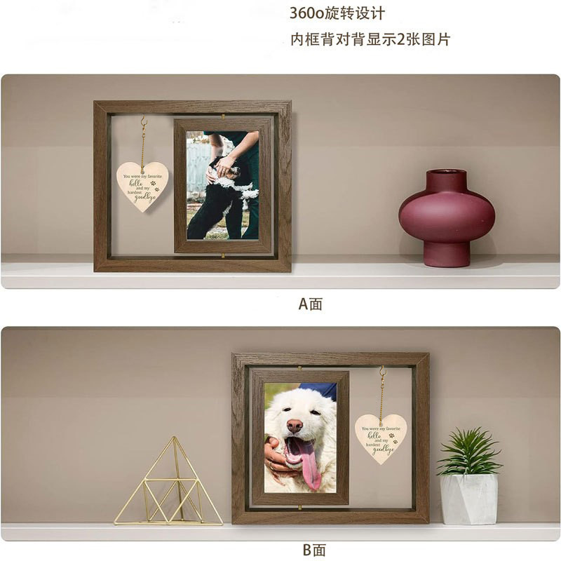 木製犬記念回転フォトフレーム結婚式木製両面フォトフレーム置物フォトフレーム愛のタグ付き