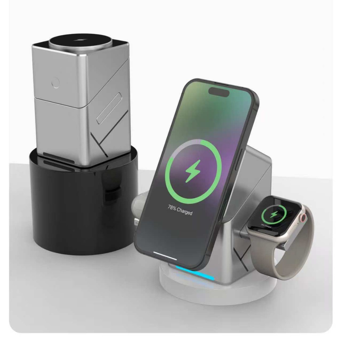跨境几何旋转魔方热销三合一强力磁吸无线充手机支架适用于苹果手