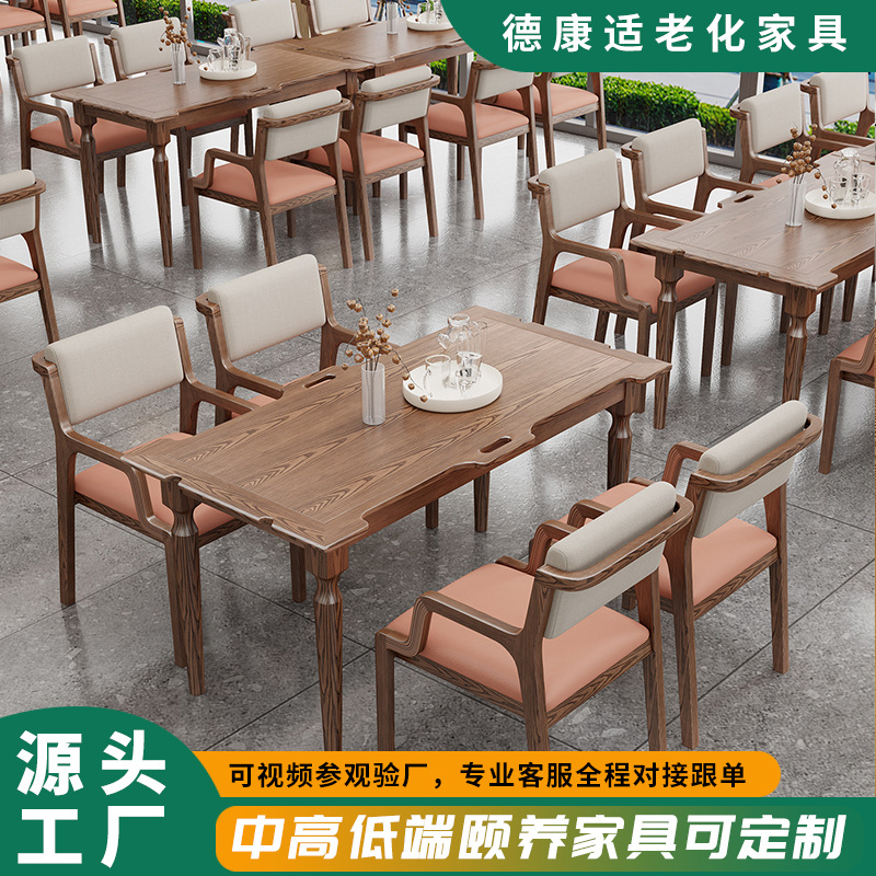 养老院适老化餐桌椅敬老院实木棋牌桌老年人公寓实木桌厂家