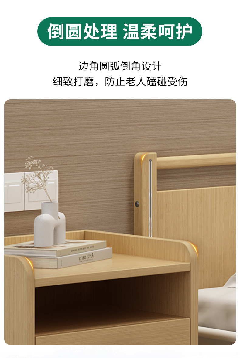 高齢者向けの介護施設のガードレール付き無垢材ベッドリフト多機能電動セルフケアベッドサイドテーブル介護施設の家具