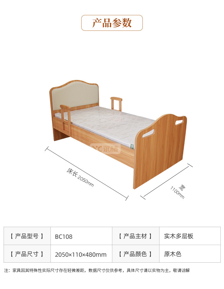 养老院专用木质自理床 老年人用适老床居家护理实木扶手老人床