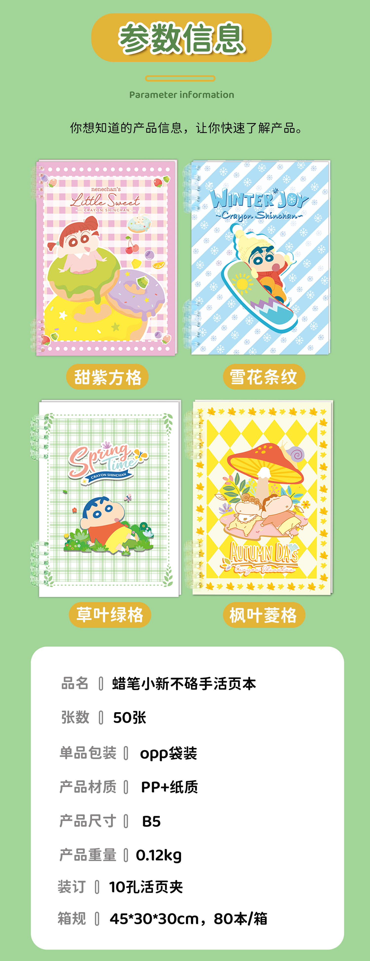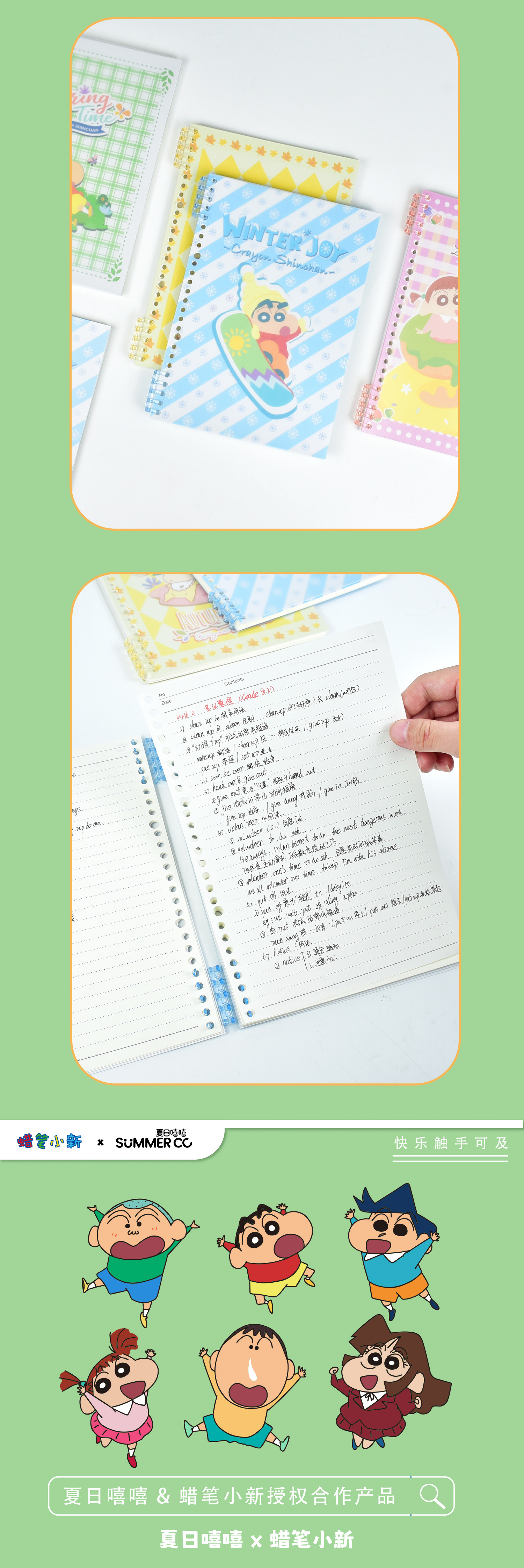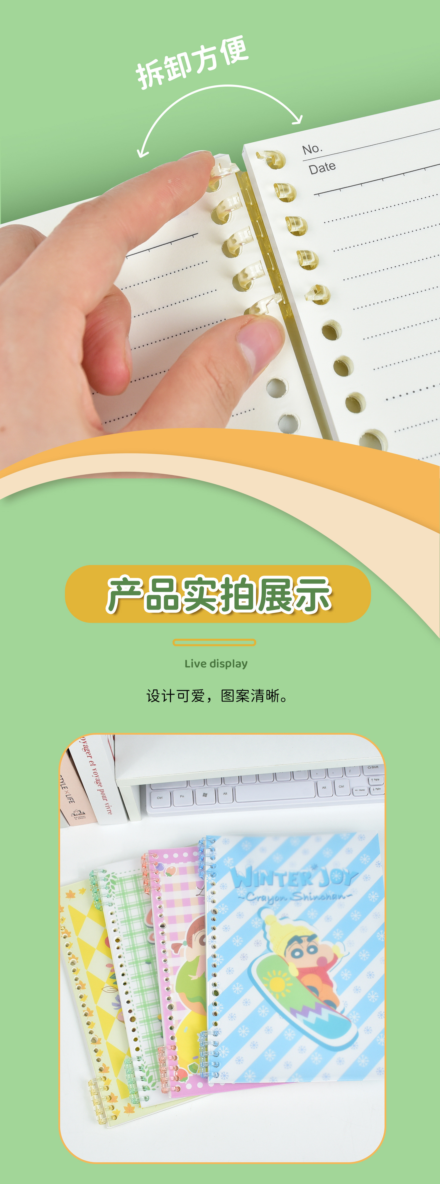 クレヨンしんちゃん公式ライセンス*b5ルーズリーフノート、取り外し可能なノート、手を傷つけない横罫ノート、文房具、手帳