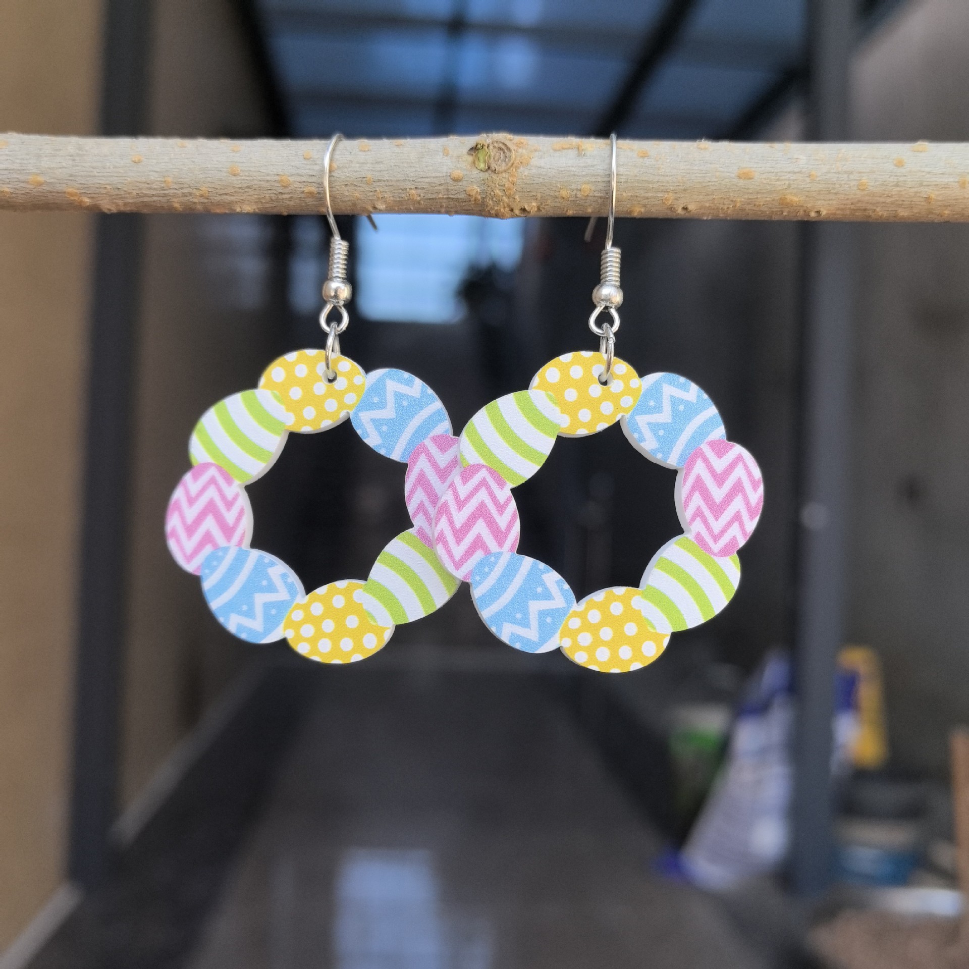 新款跨境欧美复活节亚克力彩蛋耳饰可爱印花镂空创意耳环