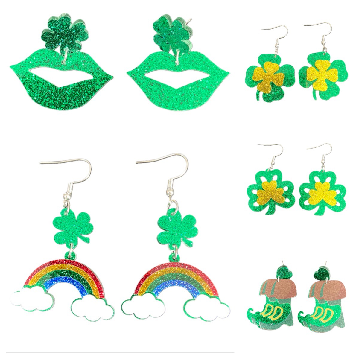 欧美热销货源圣帕特里克节绿帽节爱尔兰绿色四叶草嘴唇耳环耳饰女