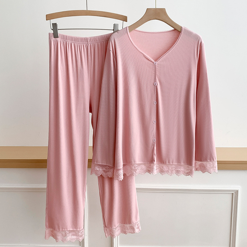 秋冬新款蕾丝睡衣长袖长裤家居服套装宽松女士家居服可外穿两件套
