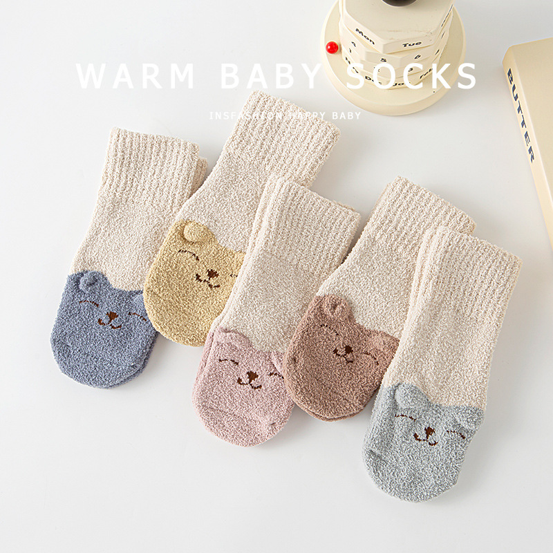 初新生婴幼儿宝宝春秋冬季珊瑚绒加绒加厚毛圈保暖小腿中筒袜子长