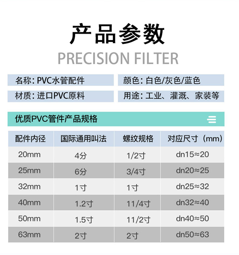 トップ建設pvcサイズヘッド変径継手異径直接直通継手給水管20付属品25 32 50 63
