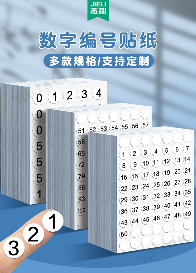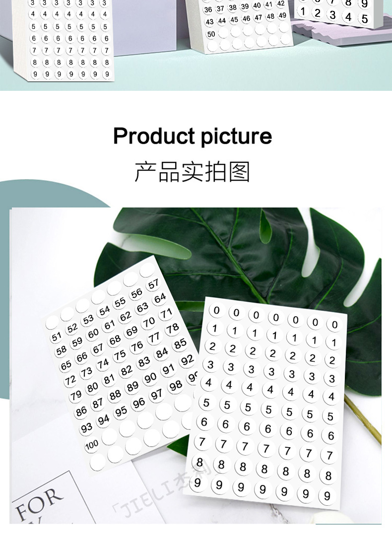 现货白底黑字数字贴纸铜板不干胶尺码标签贴圆形码数顺序编号字贴