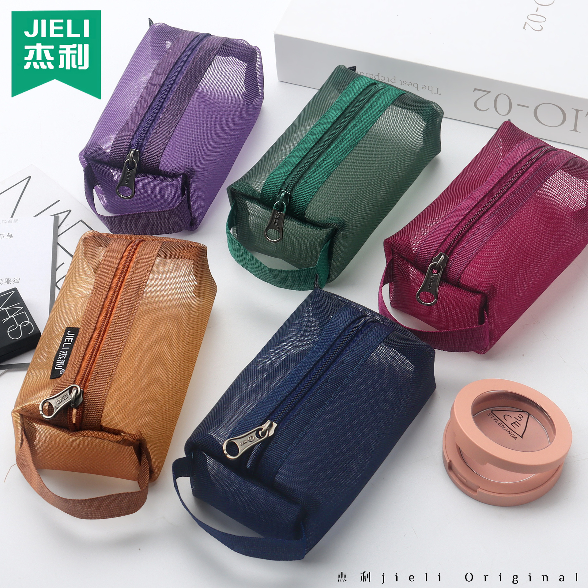 シンプルナイロン立体角型網糸小銭入れ大容量キーホルダーカードケース小銭入れ透明収納袋