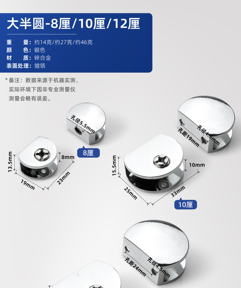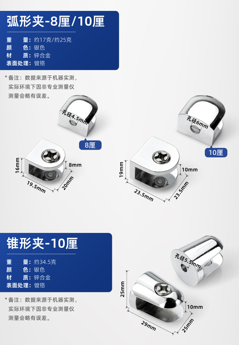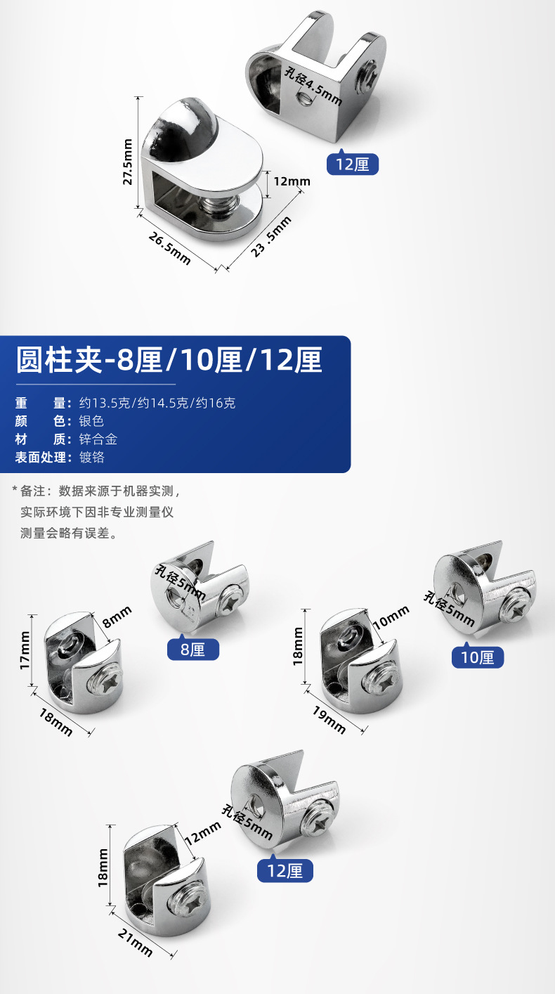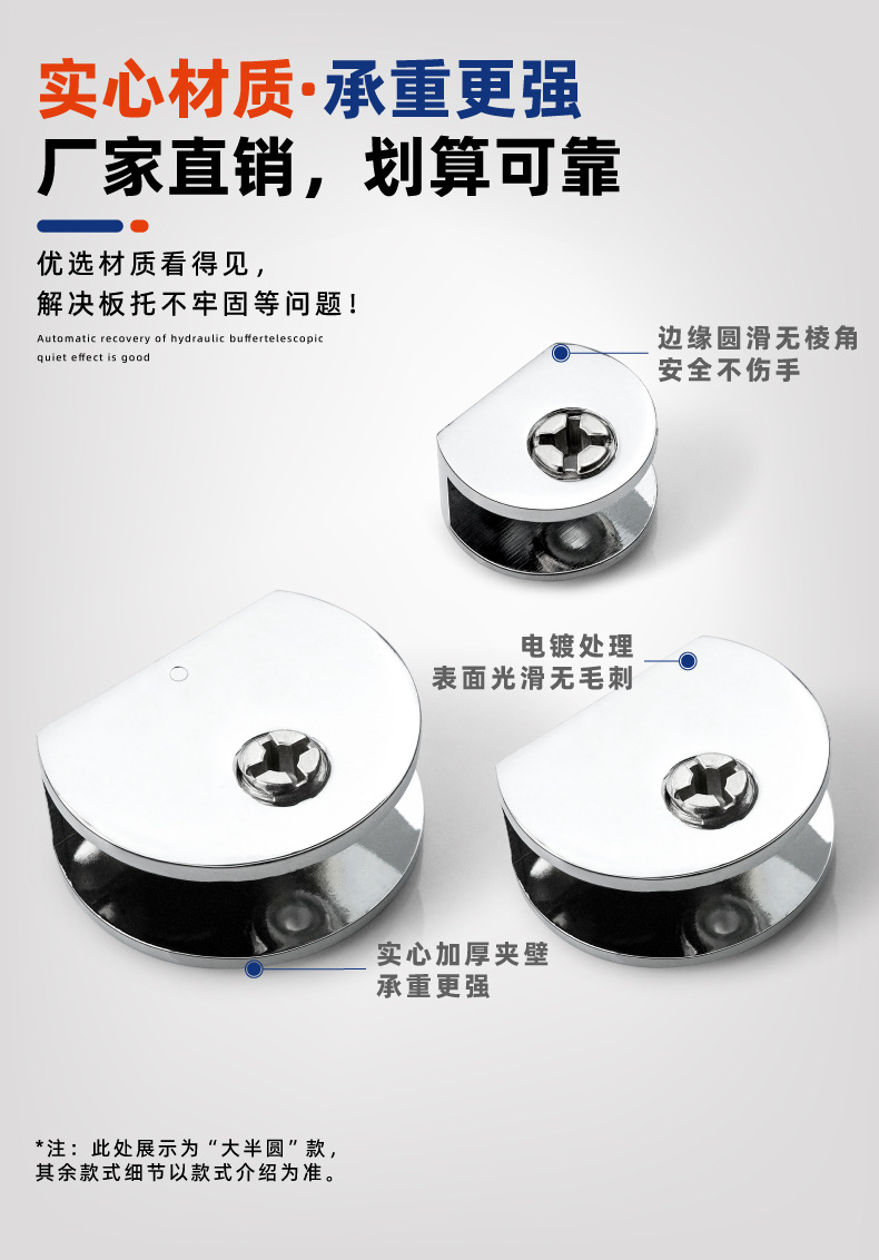 可夹4-6mm玻璃加柱夹玻璃固定夹层板托圆柱半圆卡扣浴室橱柜隔板