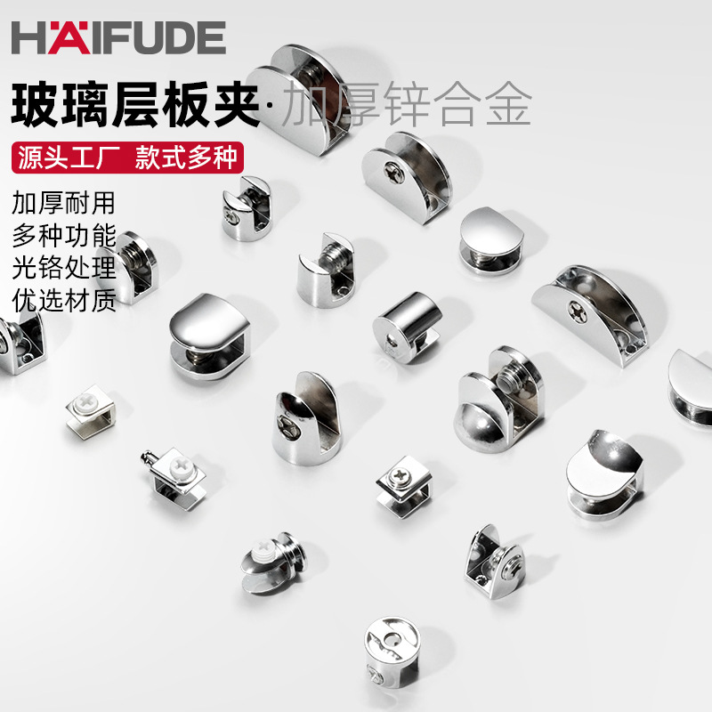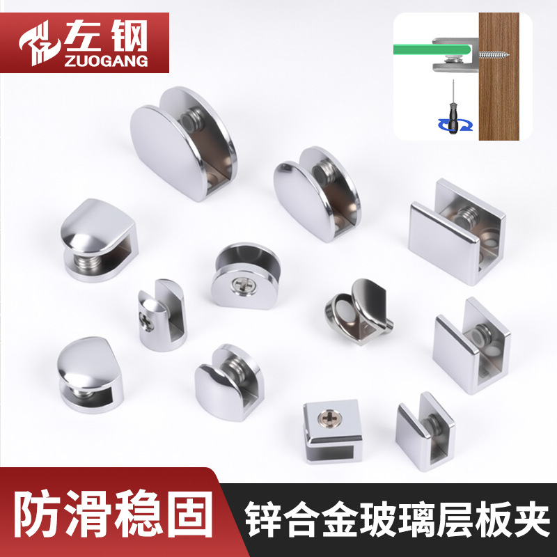 メーカー直販ガラス挟み酒棚仕切り板固定バックル積層板托亜鉛合金挟みブラケット家具金物卸売り
