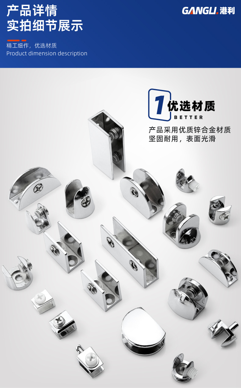 亜鉛合金ガラスクリップ固定クリップガラス仕切り板パレットバックル半円角型ブラケットクリップ卸売り