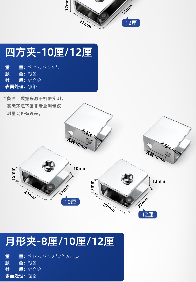 加厚锌合金玻璃夹橱柜酒柜玻璃卡子层板托固定夹支撑架托架配件