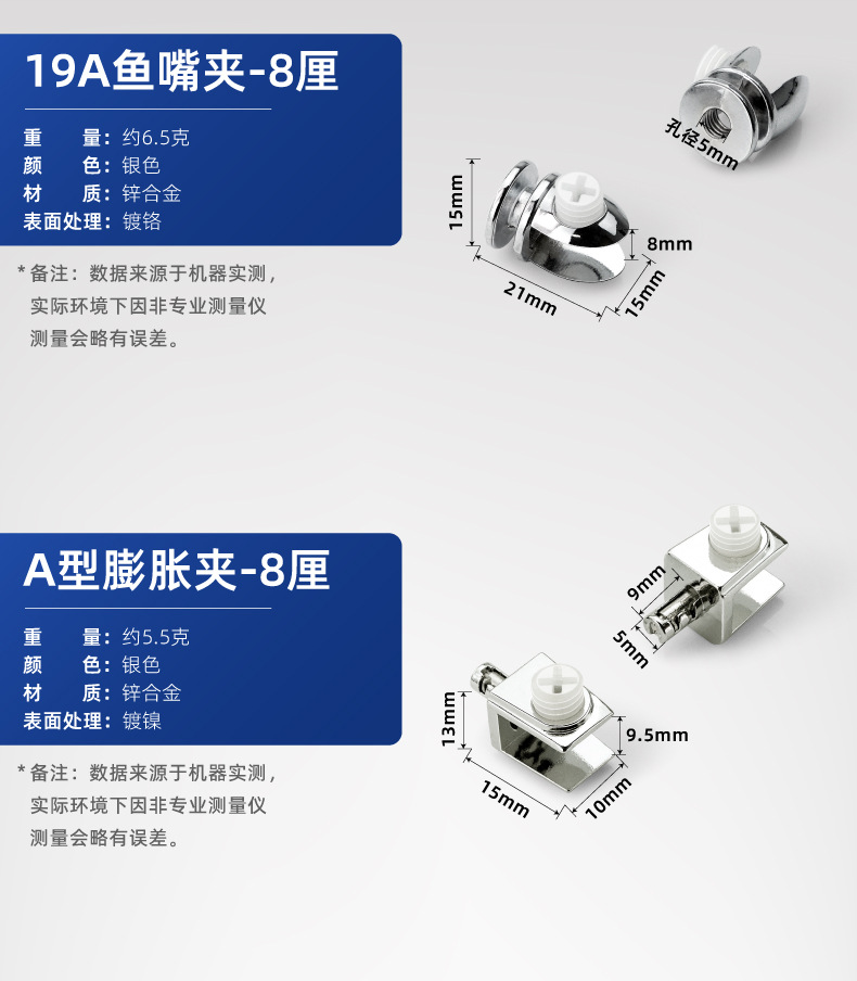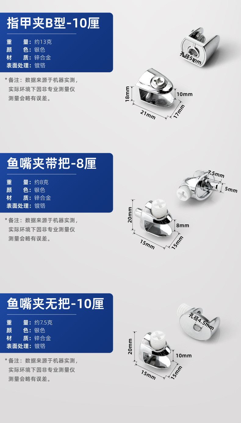 厂家批发玻璃夹锌合金玻璃层板托夹子酒柜展柜隔板托架鱼嘴固定夹
