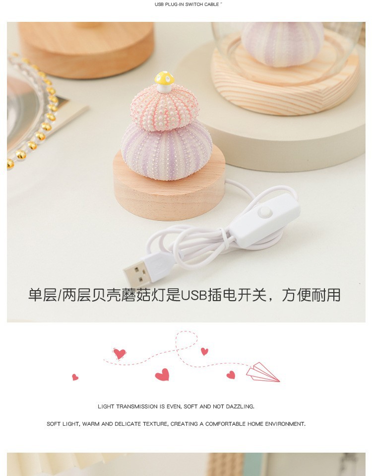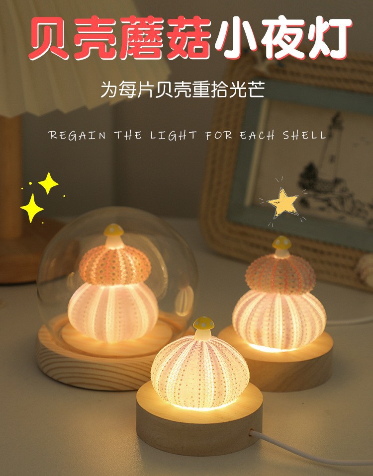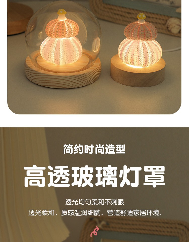 贝壳海胆小夜灯成品手工diy氛围灯卧室桌面摆件活动装饰生日礼物