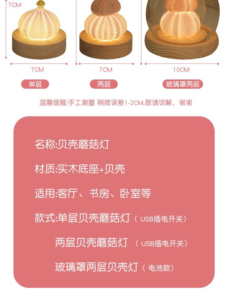 ライトの色 単層貝殻-usbプラグ,二層シェルUSBプラグインモデル,二重貝殻-電池ランプカバー
