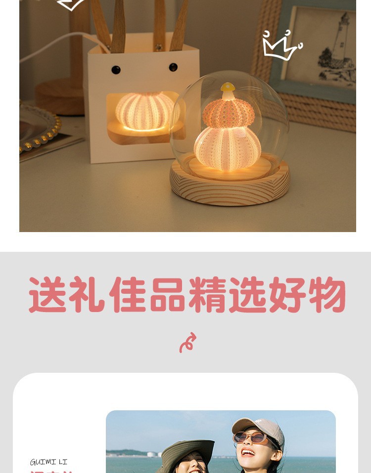 海胆贝壳小夜灯手工成品女闺蜜生日摆件活动装饰小礼品成品礼物