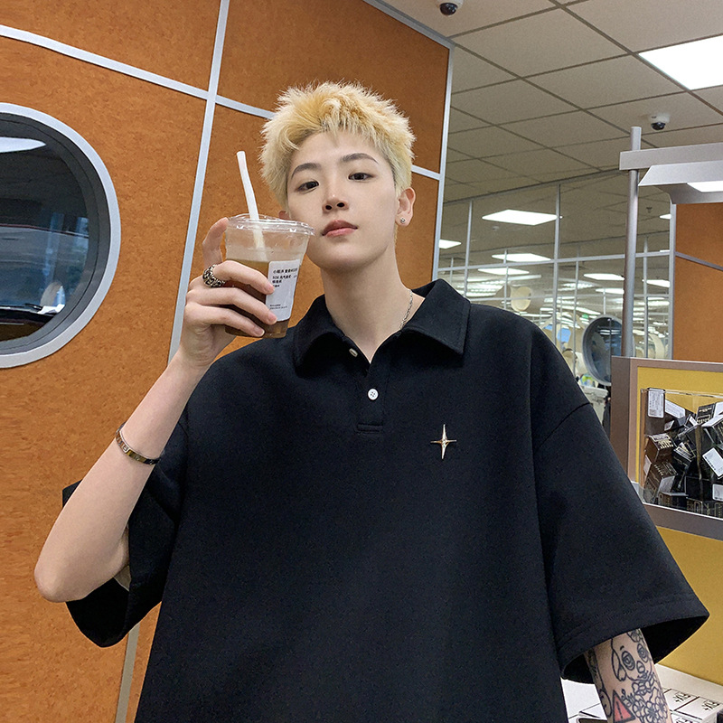 Poloシャツの男子の半袖の夏のアメリカ式の重いポンドのtシャツの上着のシンプルでゆったりした純色の襟の半分の袖のtシャツ