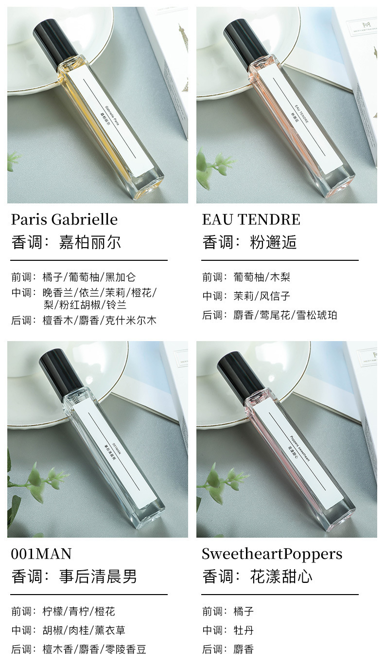 ベルリンの少女(柏の少女),大地(山岳),ダージリン茶 (ダージリン茶),リバースアイドル (リバースパリ),ブラックコーヒー (黒アヘン),嘉伯麗爾 (嘉博麗人),狂野(狂夜),青い風鈴 (仙鈴風跡),事後早朝男(初日春暁男),檀道(潭道の影),紺色 (紺色男性),烏木沈香,砂漠区バラ (無人区バラ),自由の水(任意の水),ミスココア (ココア),ナポレオンの水,ナイルガーデン (泊羅河花園),事後早朝女(初日の暁女),鼠尾草と海塩,銀色の仙泉 (白い仙泉),イギリス梨と小蒼蘭,悪い男の子 (汚い言葉)