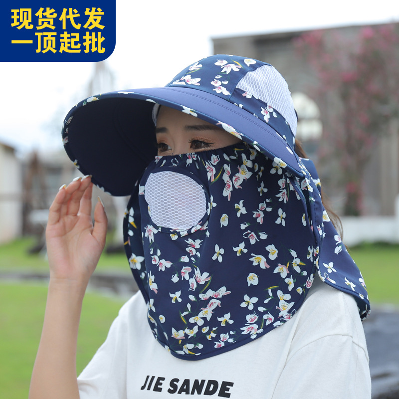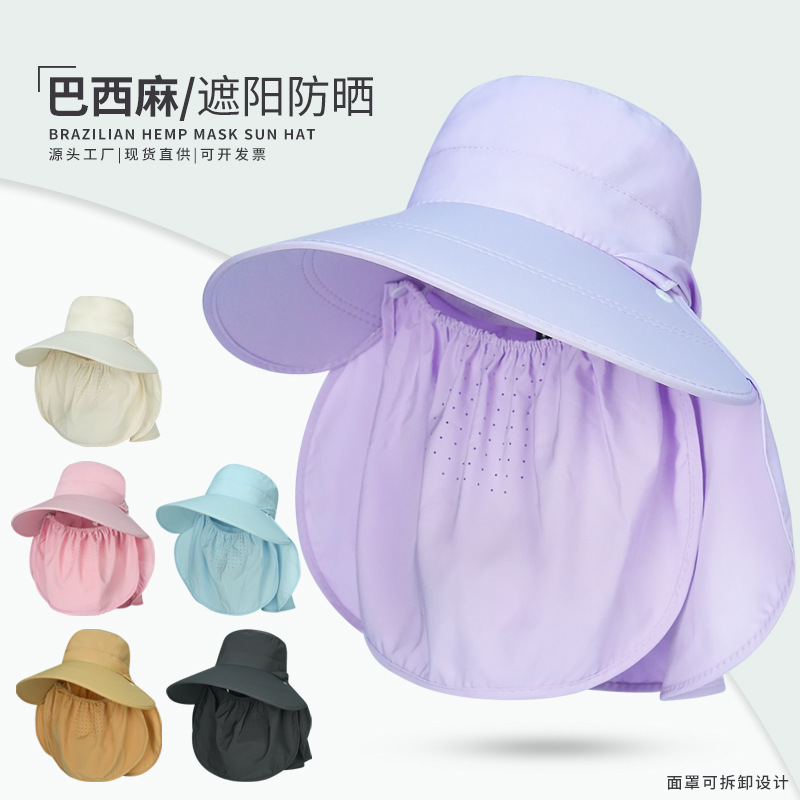 メーカーの夏の帽子の女性の日よけの日焼け止めの帽子のマスクは肩の帽子をかぶって顔の大きなひさしの帽子のマスクをかぶせてお茶の帽子を採取して卸売りします。