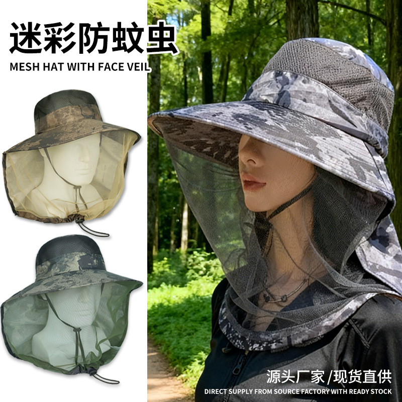 防蚊帽屋外釣り帽男性用顔を隠す日焼け止め帽通気性ネット糸マスク夜釣り防虫防蜂帽軒