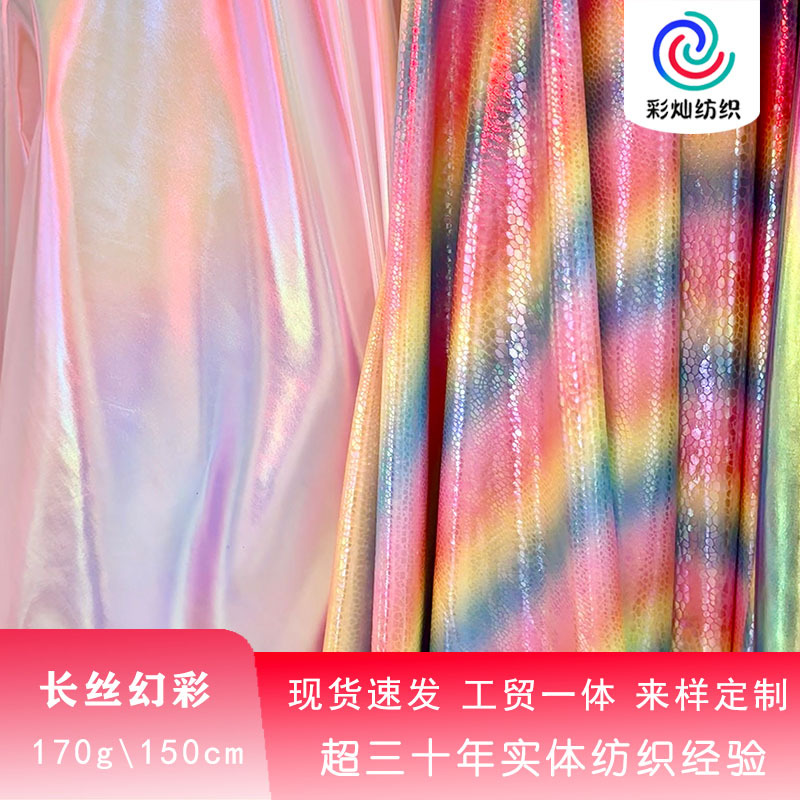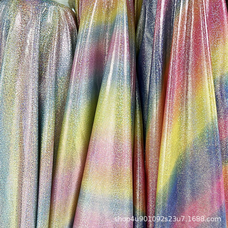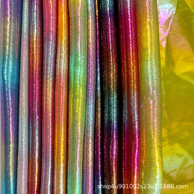 カラフルなレーザー透明幻彩スパンデックスフル版舞台演出服生地背景布玩具人形生地卸売り