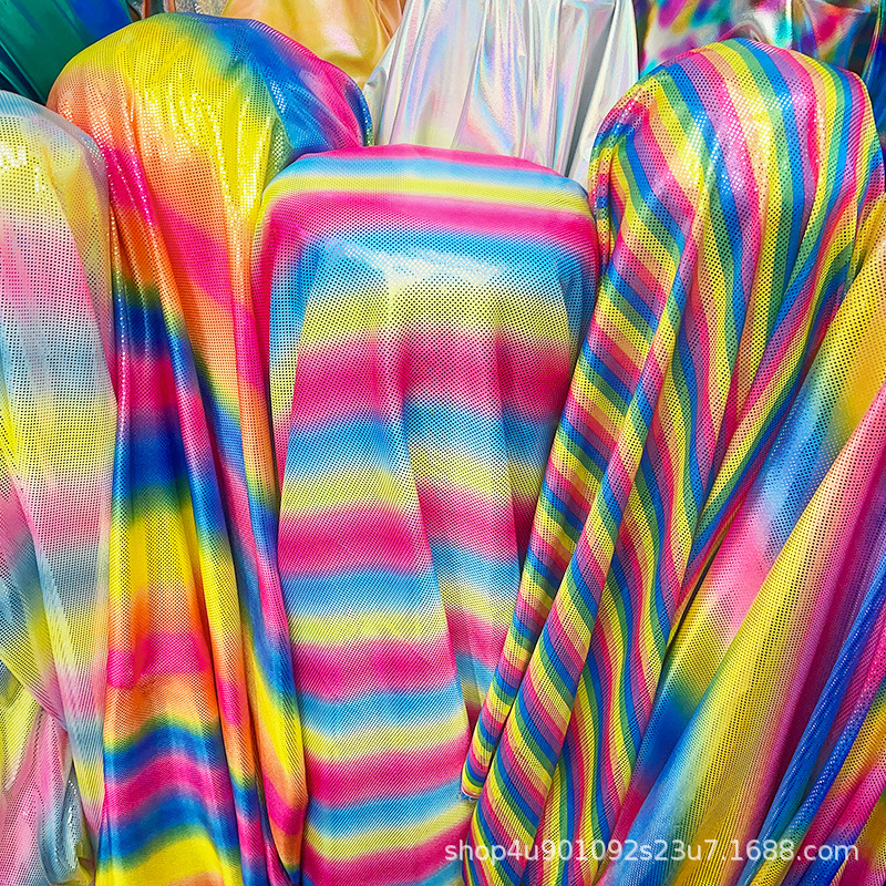 カラフルなストライプの箔押し布グラデーション幻彩コンピュータ版レーザー箔押し布舞台演出服装布玩具補助材料
