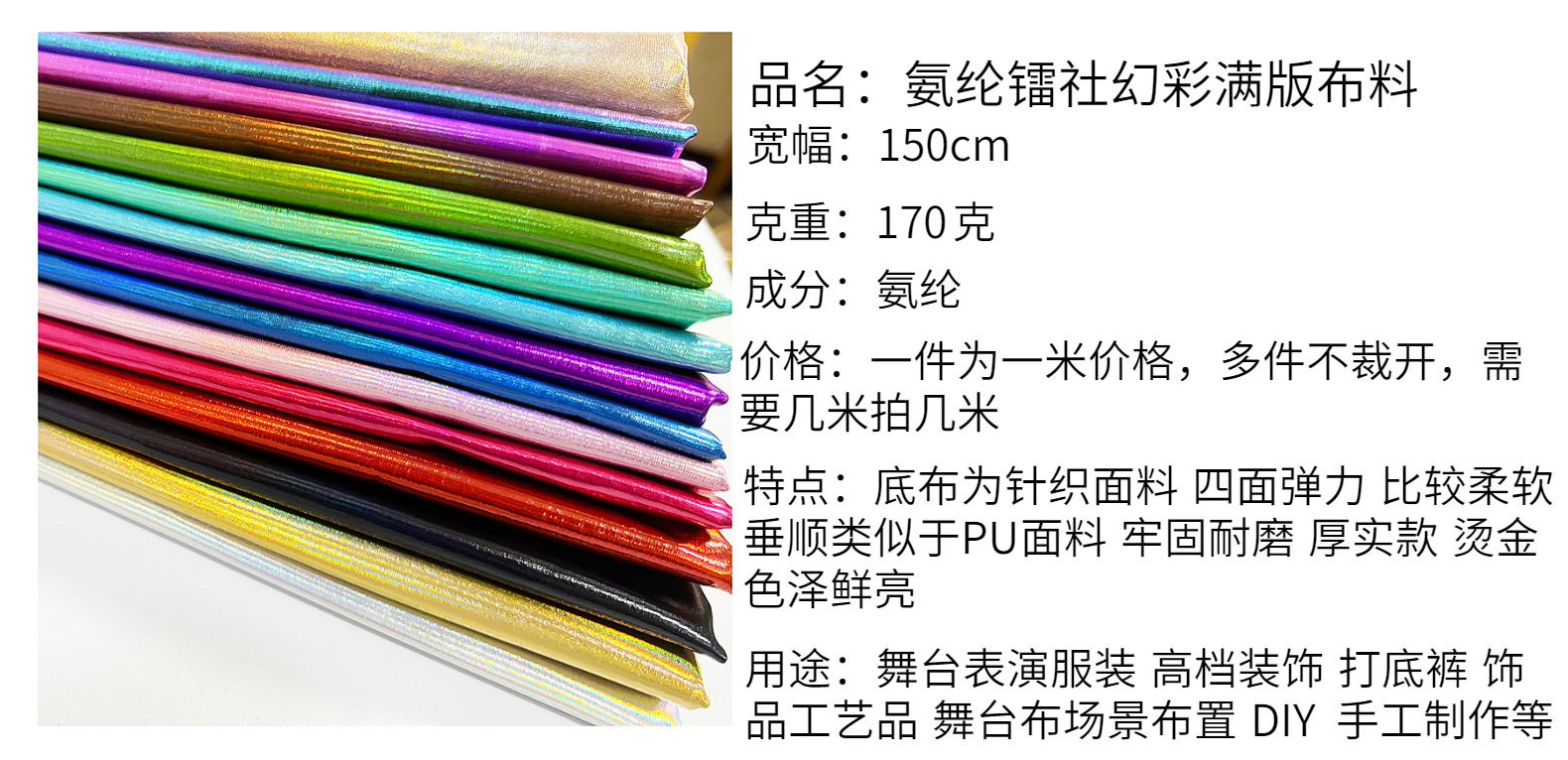 弾力性幻彩レーザースパンデックス生地素地レーザー満版箔押し布舞台演出服装玩具生地