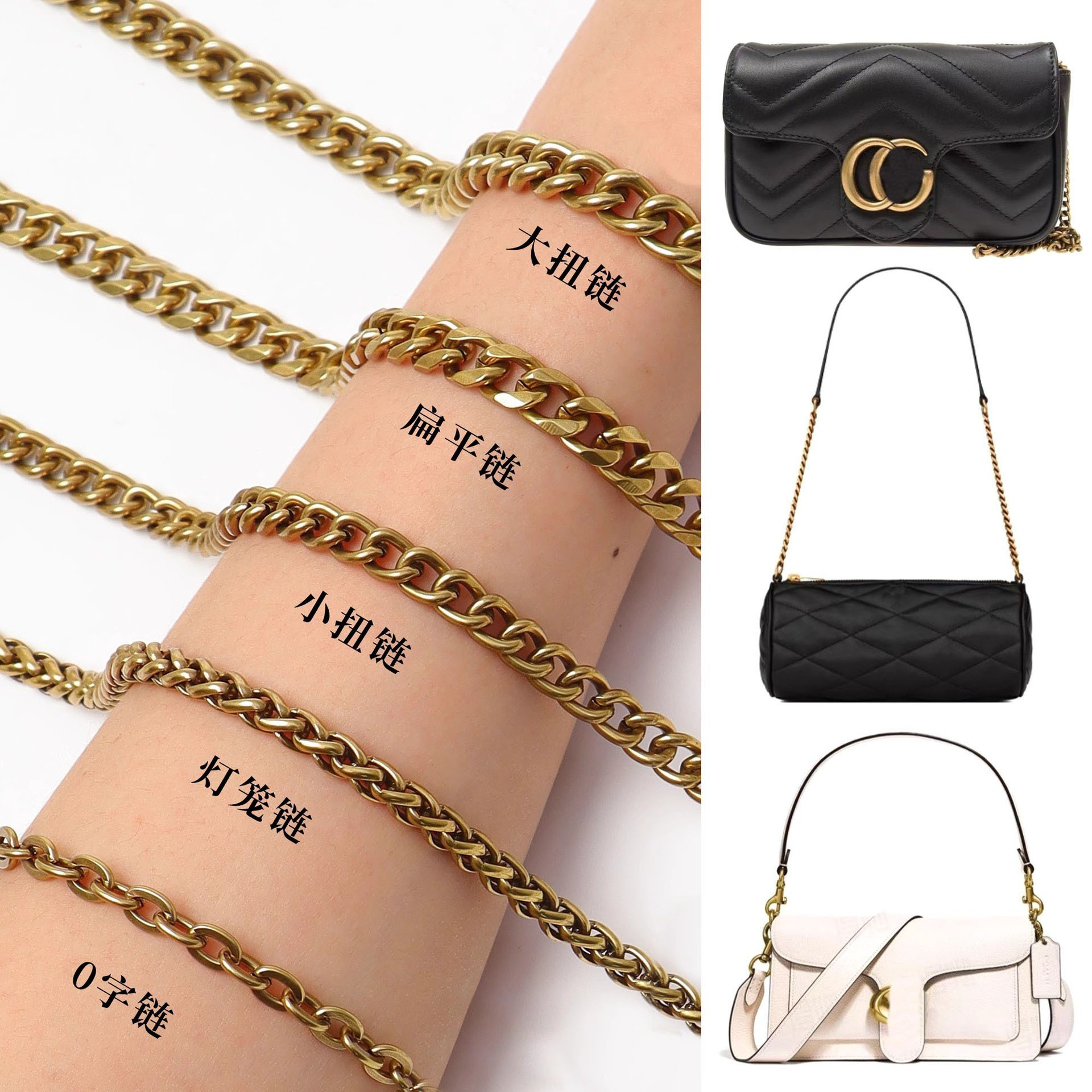 古铜色古金色包包链条单买 替换酒神包肩带斜挎金属链子腋下配件