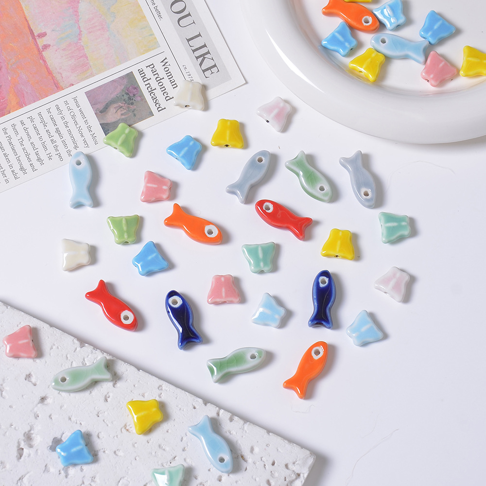 陶瓷彩绘小鱼吊坠直孔蝴蝶串珠 手工DIY项链手链饰品配件散珠材料
