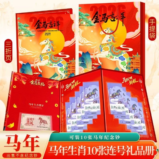 2026马年生肖纪念钞10张礼品册生肖纪念钞收藏册纸币10连生肖钞册