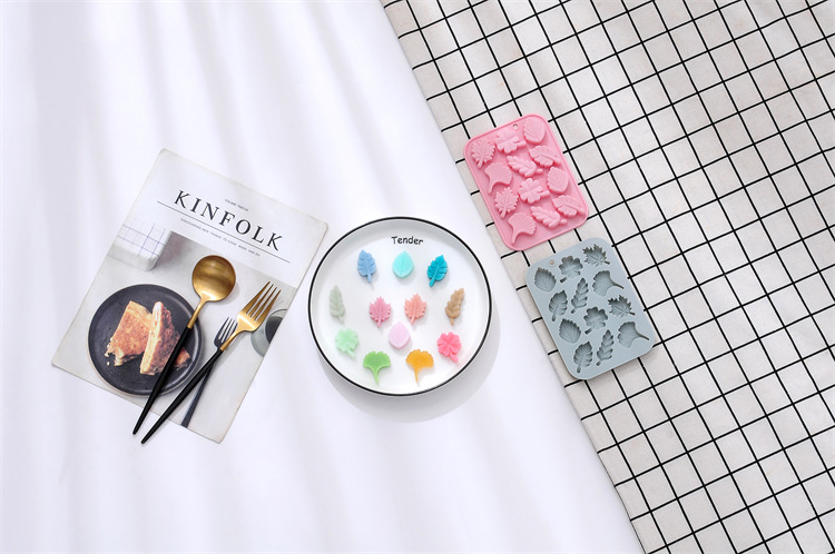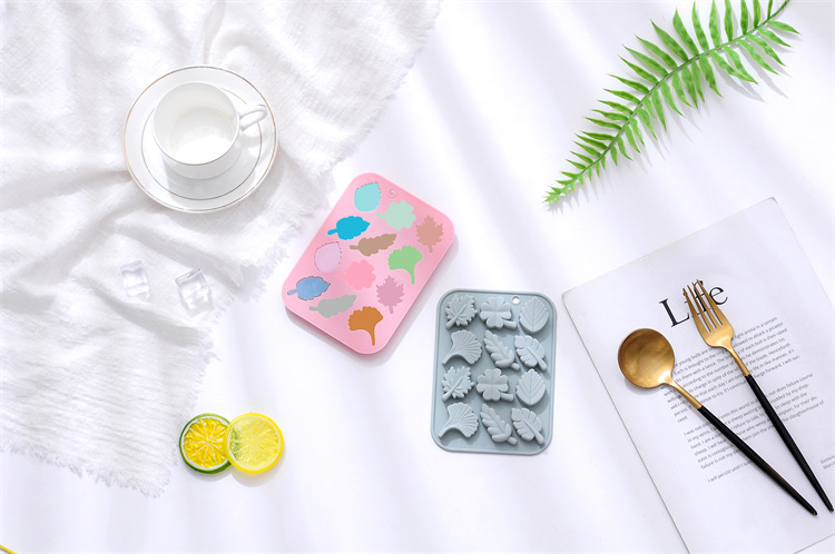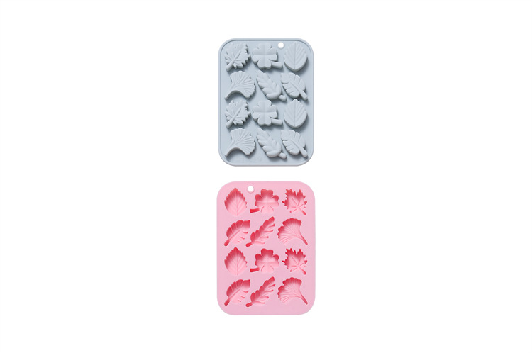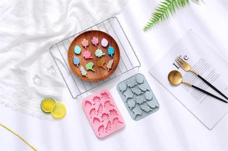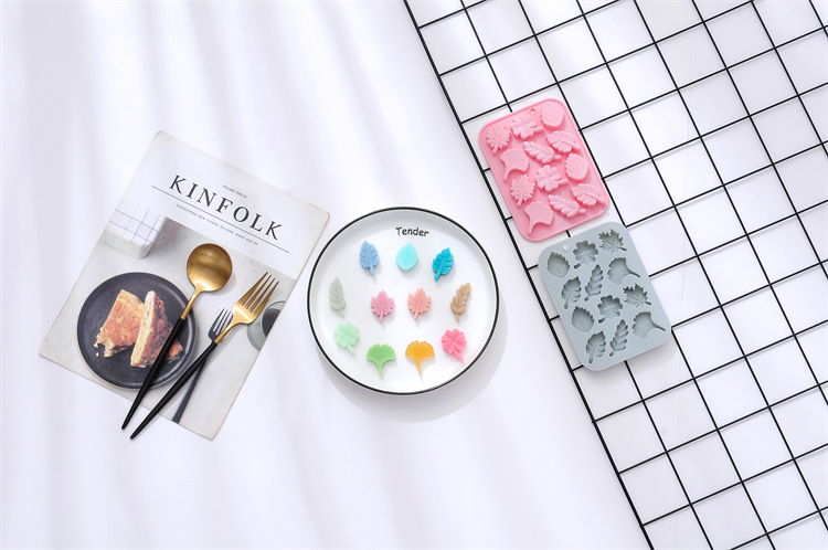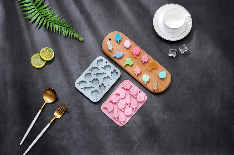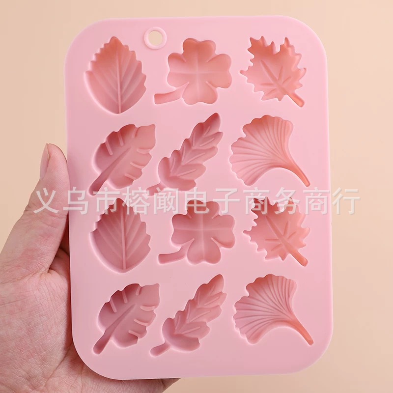 现货 12连6种不同叶子造型巧克力模蛋糕模具烘培工具硅胶滴胶模具