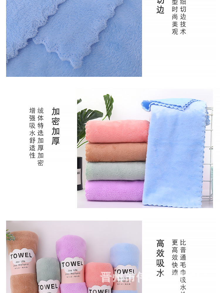 高密なサンゴのベルベットの速乾性タオル【五条セット】柔らかい吸水性の洗顔タオルは腰のシールの震え音を持っています。