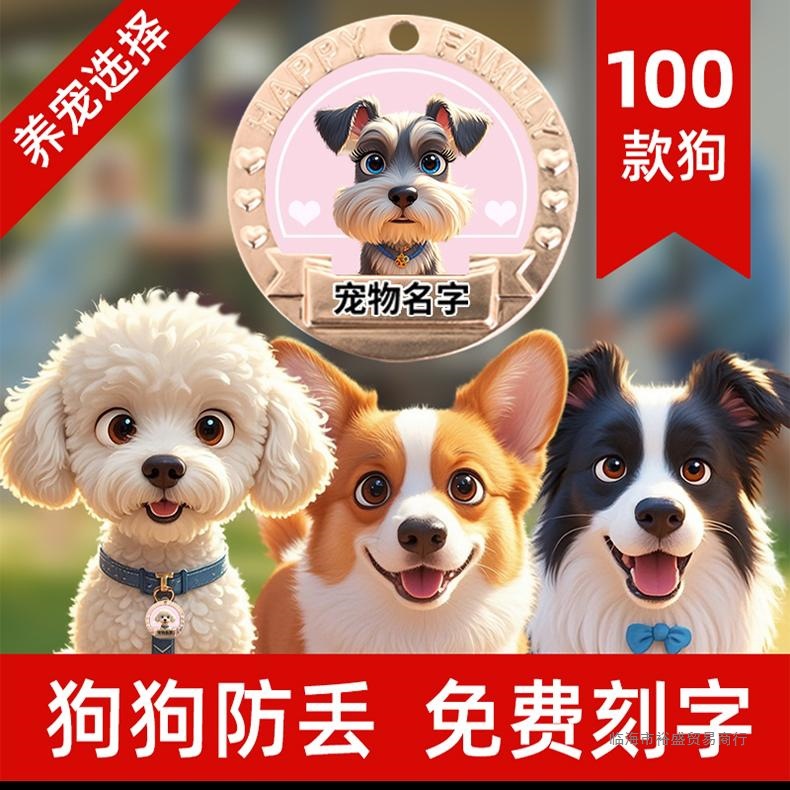 宠物防丢牌身份牌免费激光刻字批发狗牌泰迪比熊狗牌项链银色牌