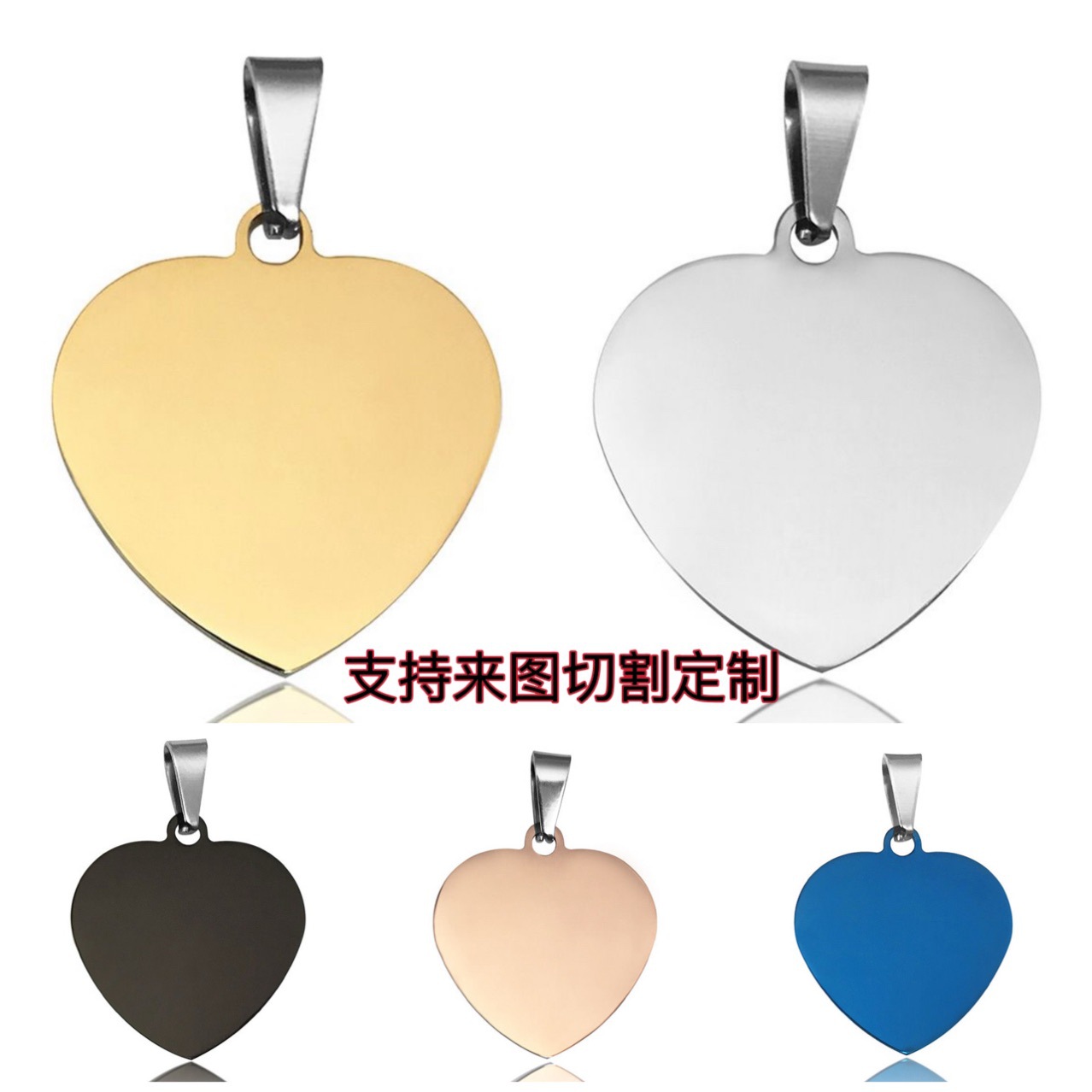 不锈钢心形吊坠钛钢桃心军牌项链爱心狗牌激光刻字空白牌logo材料