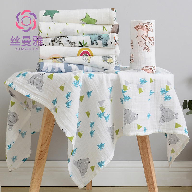 二層ガーゼタオル赤ちゃん卸売りアニメプリントバッグは吸水新生児夏の毛布に包まれている